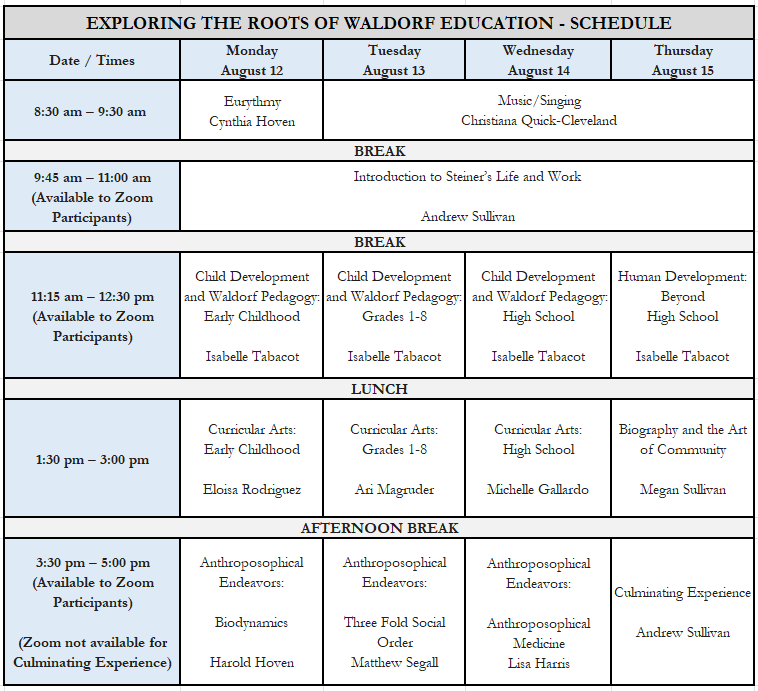 Join us for a four-day workshop exploring the heart of Waldorf education, its anthroposophic roots, and the works of Rudolf Steiner as they exist in our times. This workshop is for teachers new to Waldorf education, for parents, for alums, and for experienced teachers who want to reënliven their connection to Waldorf education.